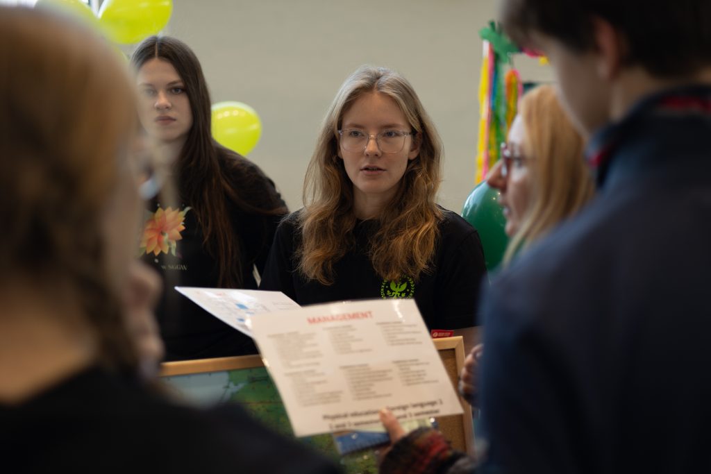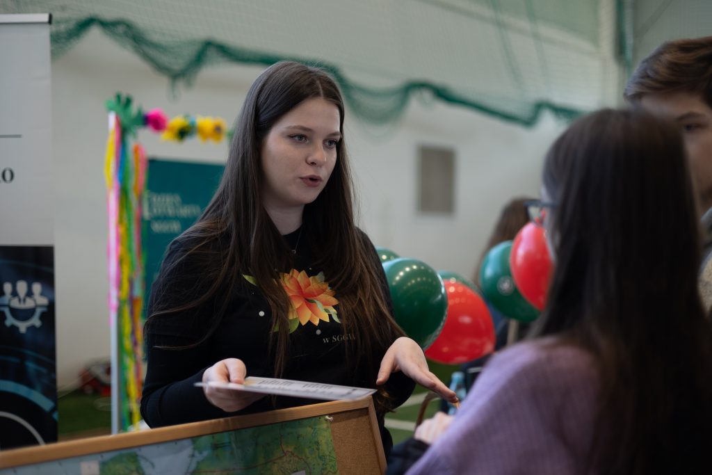 Ostatnim punktem programu były rozmowy z przedstawicielami poszczególnych kierunków studiów. Studenci SGGW opowiadali o tym, jak wygląda nauka na ich wydziałach, gdzie odbywają praktyki oraz w jaki sposób już w trakcie studiów wykorzystują zdobytą wiedzę. Dzielili się także swoimi planami zawodowymi i doświadczeniami, pokazując, jak różnorodne możliwości rozwoju otwiera studiowanie w SGGW.